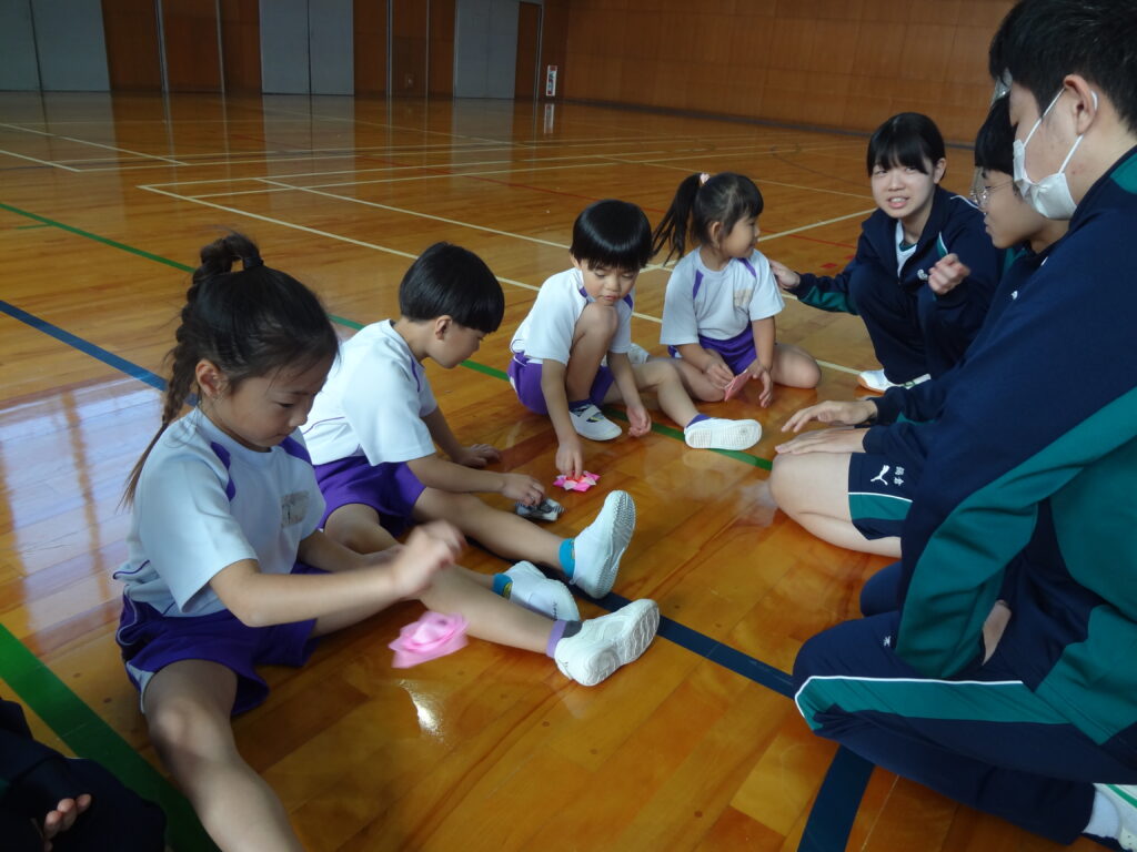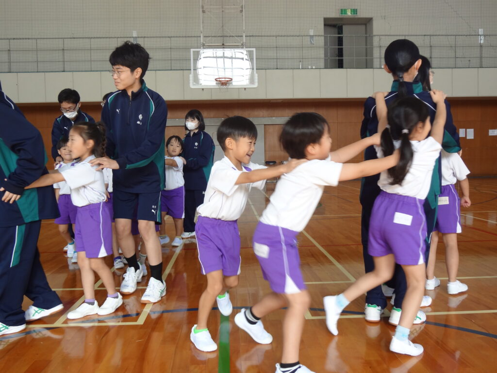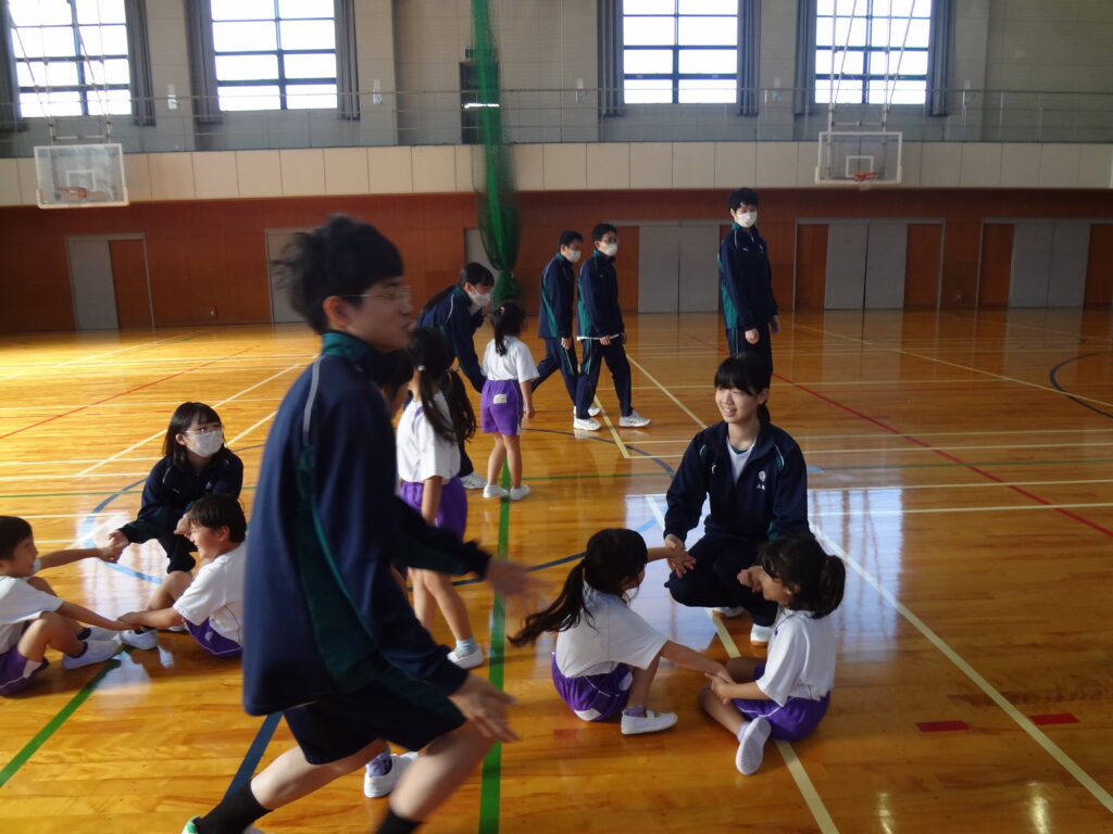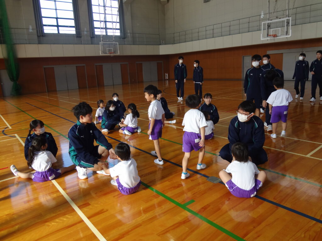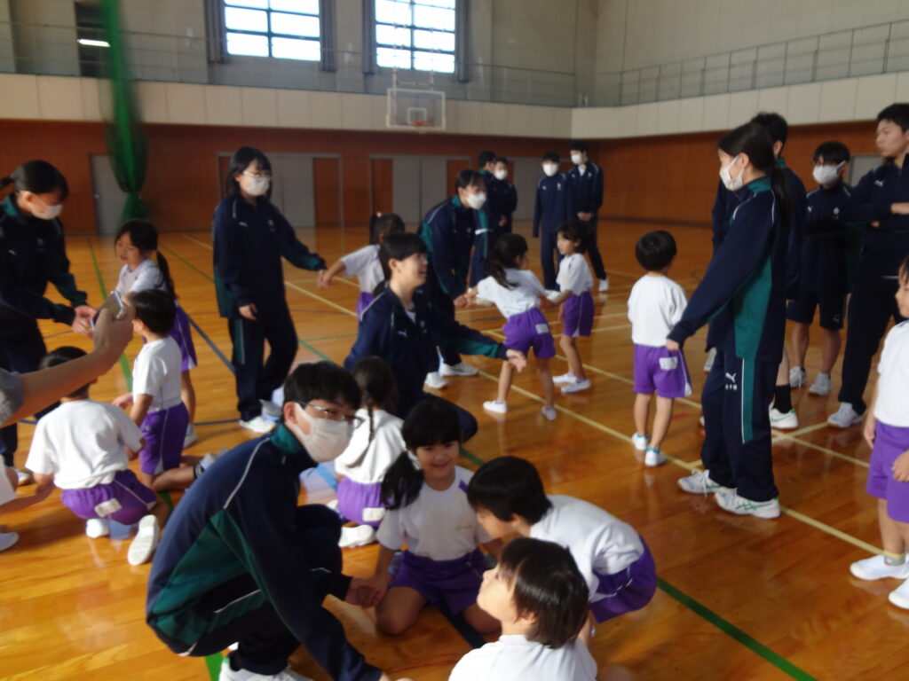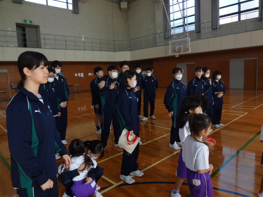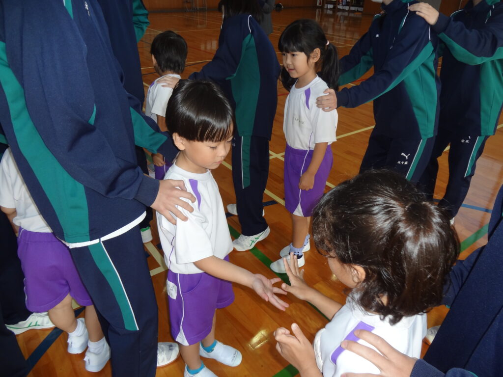 金沢龍谷高等学校中等部3年生と交流会がありました。今回は体育館に集まって中学3年生とゲームなどして交流を深めました。会話で笑ったり、手をつないで電車連結遊び、ハンカチ落としなどで楽しい時間を過ごしました。最後のお別れには幼稚園児が中学生のお姉さんやお兄さんに走り寄りハグする場面が見られました。次回はお姉さん、お兄さんとスウイートポテトを作るそうです。楽しみです。